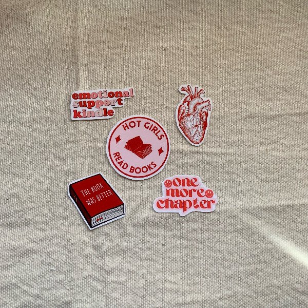 Sticker pack x5 "Bookish rojo"